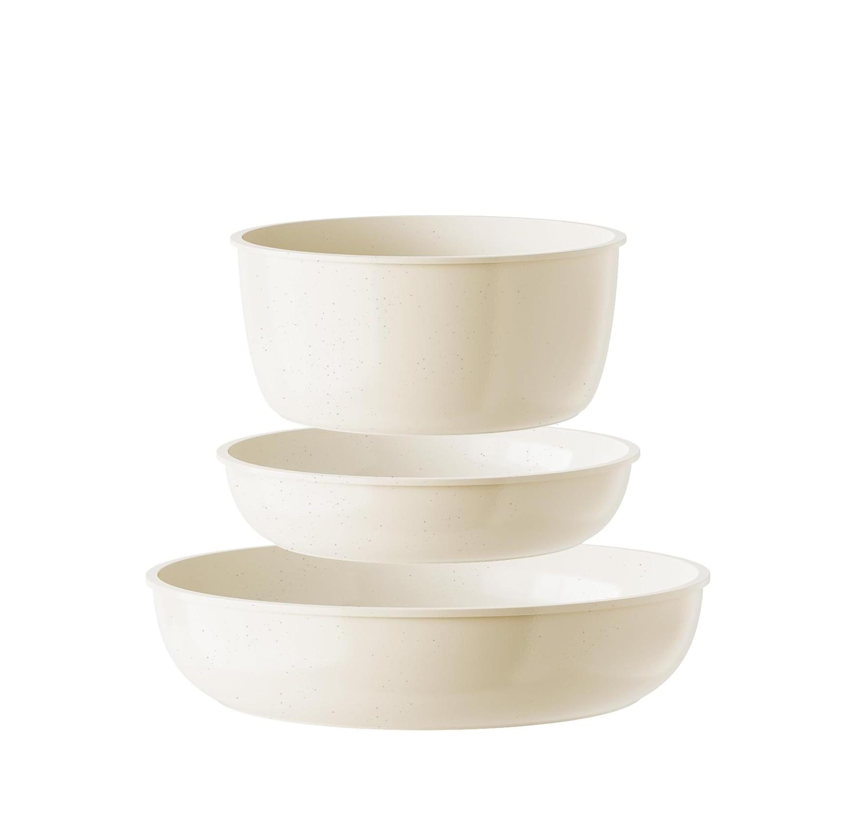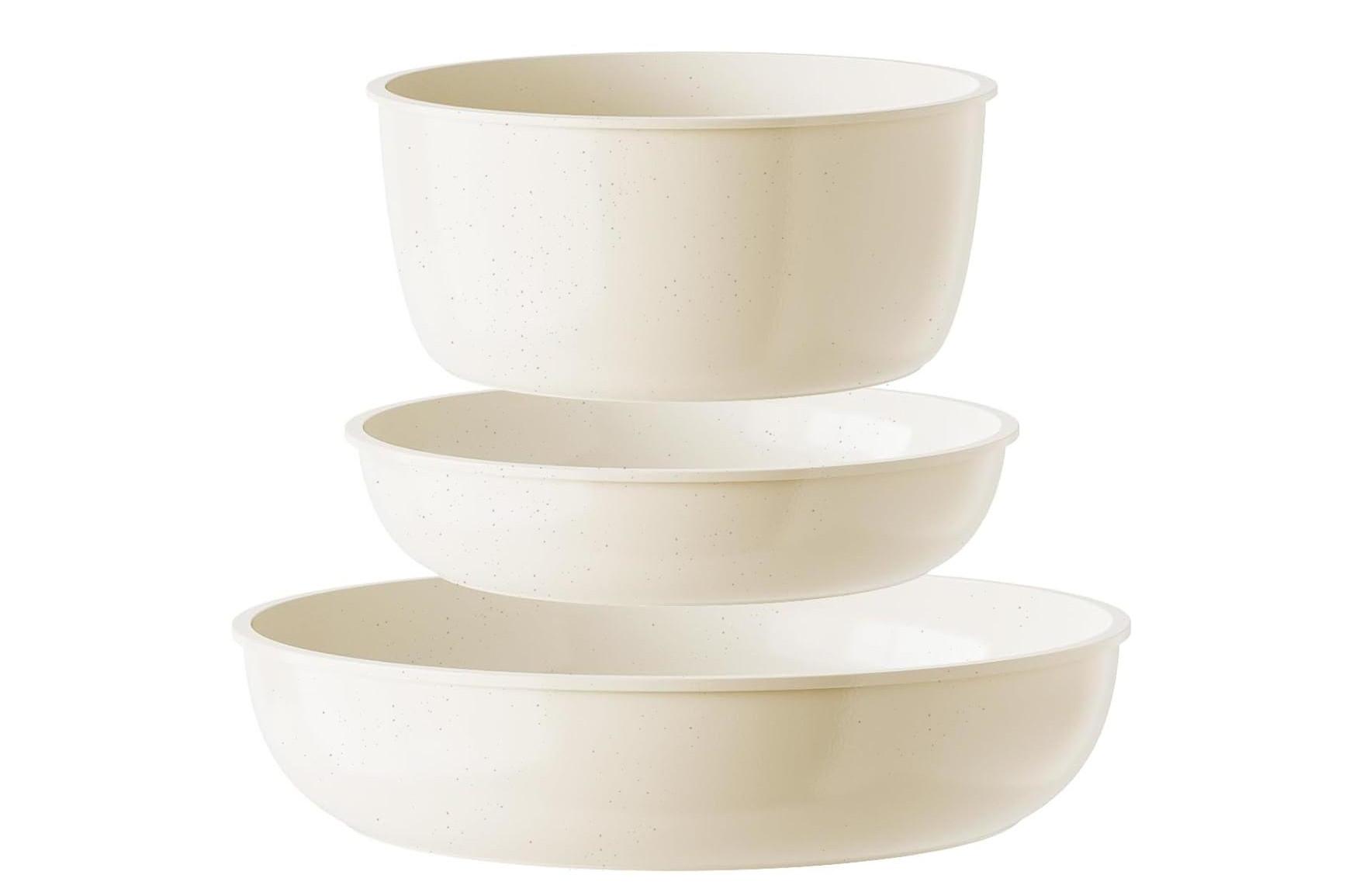 La nueva BATERÍA DE COCINA que lanza el Club del Suscriptor está compuesta por 8 piezas en granito blanco, con mango extraíble y fácil de apilar. De la marca Castey.