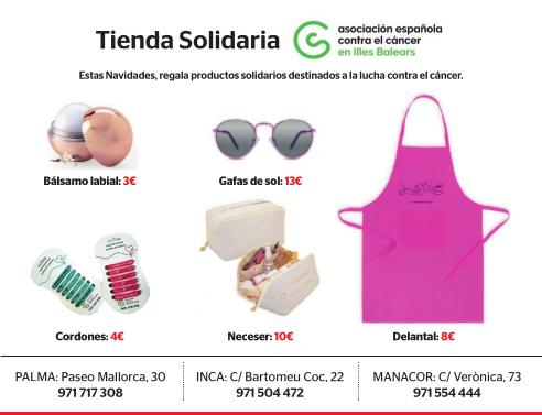 Desde el Club del Suscriptor te invitamos a colaborar con esta noble causa a través de la compra de los productos de la tienda solidaria contra el cáncer que, con mucho cariño, han seleccionado desde la Asociación y que están a la venta por un precio muy especial para suscriptores de Ultima Hora.