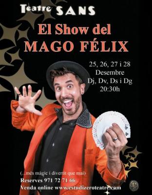 El Mago Félix estará en el Teatre Sans para compartir un poco de magia con los espectadores. Un espectáculo con ilusiones, humor y momentos que seguro no olvidarás. Esta puesta en escena está pensada para toda la familia y el mago espera la participación activa del público que se sorprenderá con cada truco.