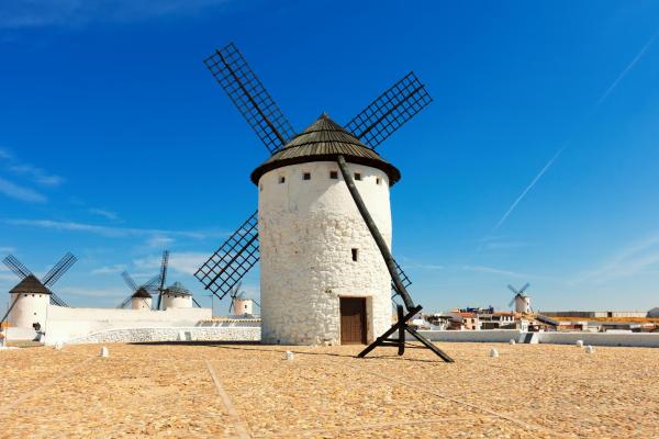 Escenario de las aventuras de tan famoso caballero y su fiel escudero Sancho Panza y donde el viento mueve los icónicos molinos... o gigantes, a ojos de Don Quijote, está además llena de pueblos manchegos, con sus casas encaladas, sus ventas y sus castillos. Caminar por La Mancha es reencontrarse con los lugares que inspiraron a Cervantes: campos de cereales dorados, viñedos que dan origen al vino manchego y parajes donde la realidad y la imaginación parecen entrelazarse.