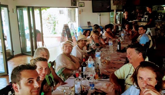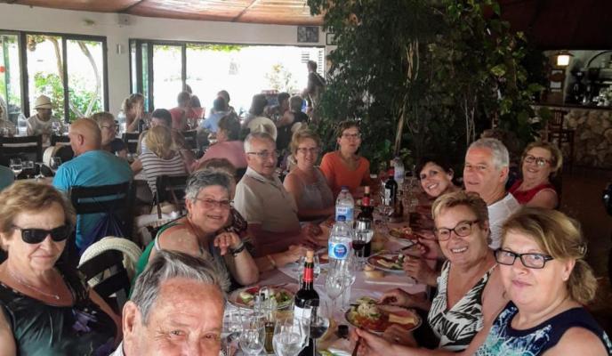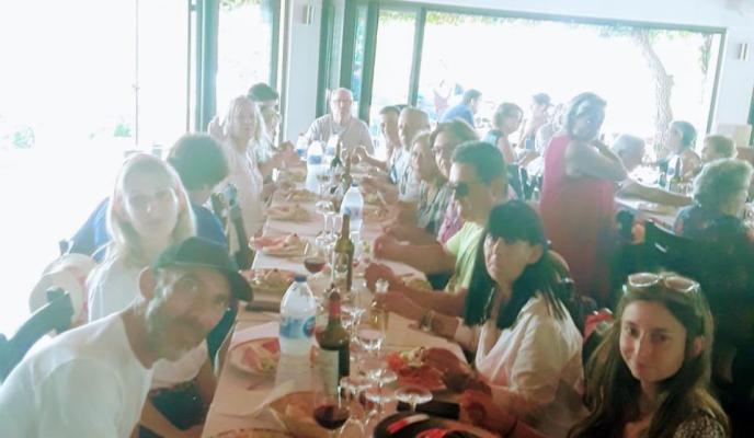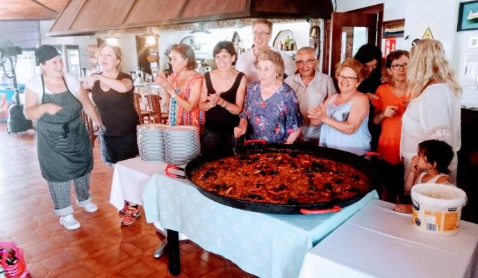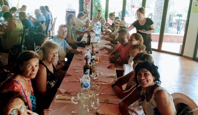 En torno a las tres de la tarde, el itinerario continuaba su línea hacia la playa de Es Migjorn. Allí, les esperaba una distendida comida entre amigos, que incluía un primer plato, una paella como protagonista del menú y un dulce postre para concluirlo. Un poco de tiempo libre, regaló a los viajeros maravillosos momentos para disfrutar tanto de la piscina del hotel como de la playa de Es Mitjorn y largas caminatas por la arena.