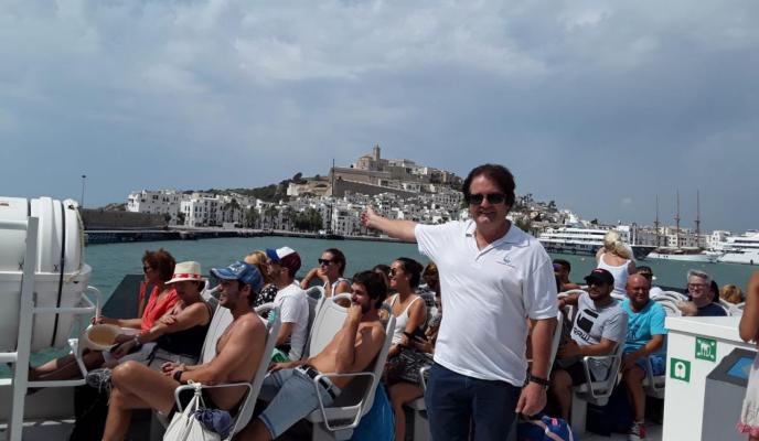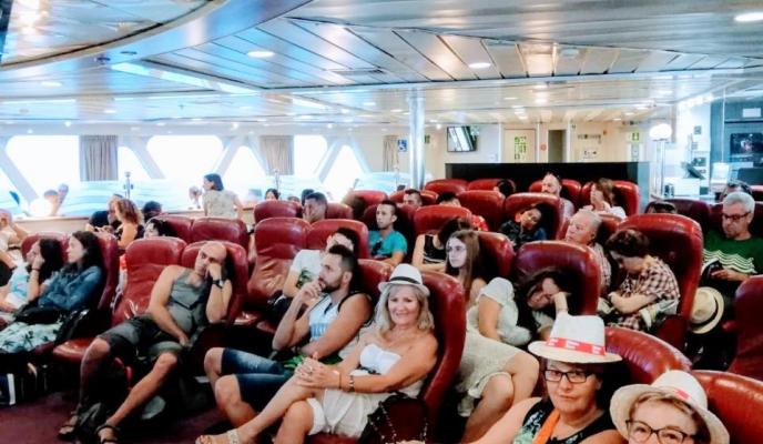 En ferry, así se trasladó el casi medio centenar de suscriptores desde Mallorca a Formentera, la isla de la luz.