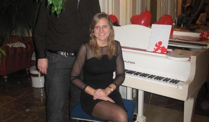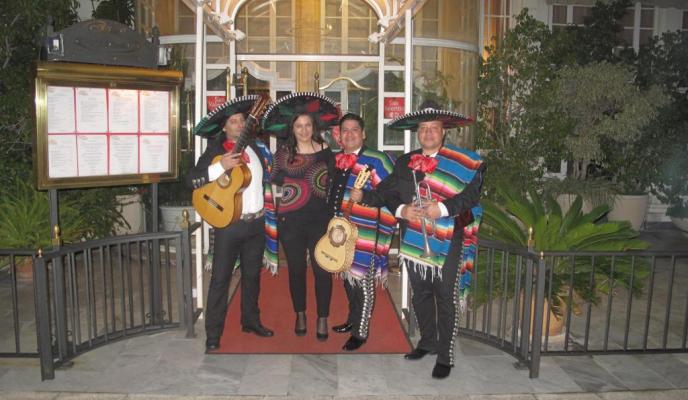 La fiesta estuvo amenizada por un pianista que interpretó melodías románticas muy acorde con el momento. Por otro lado, un simpático grupo de mariachis cantó y tocó las canciones de amor más populares al son de las palmas de los asistentes.