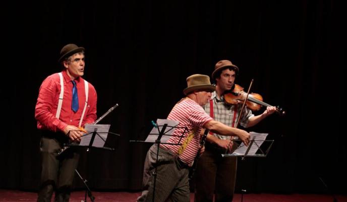 Los instrumentos musicales acompañaron la actuación de tres clowns que ofrecieron escenas muy divertidas en su particular lucha por hacerse con el protagonismo de un concierto sobre el escenario, lo que propició momentos hilarantes y caóticos que hicieron saltar númerosas risas del público más exigente: los niños.