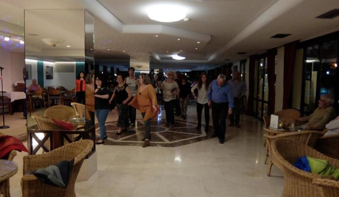 Sin embargo, en esta estancia hubo una gran novedad. Y es que desde el Club del Suscriptor se organizaron, en una de las salas del hotel, sesiones de baile en línea. Para ello pusieron al alcance de los suscriptores dos monitoras, Adela Herrero y Juanina Canet, que ofrecieron tres sesiones diarias de una hora cada una para que los socios más marchosos se iniciaran en el baile en línea aconsejados por dos expertas. La iniciativa tuvo una gran acogida por parte de los suscriptores, puesto que contó con un gran número de participantes de todas las edades, asistieron niños, y también mayores de todas las edades, que quisieron participar en una nueva experiencia; muchos de ellos no dudaron en repetir.