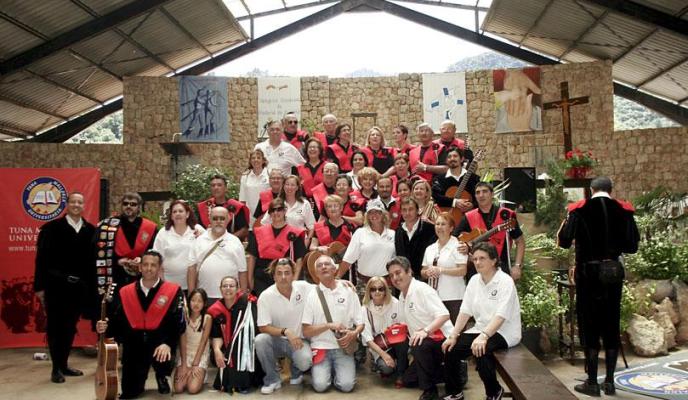 Siempre sensibles ante cualquier actividad con fines solidarios, la Tuna de Ultima Hora desplegó su mejor versión en el encuentro lúdico que, celebrado el pasado sábado 5 de junio en el Monasterio de Lluc, organizó la Pastoral Sanitaria de la Diócesis de Mallorca con Antonia Cladera al frente, y que contó con la presencia de dos mil personas. Don Jesús Murgui, Obispo de Mallorca, ofició una ceremonia religiosa y posteriormente accedió gustoso a posar frente a la cámara junto a la Tuna.