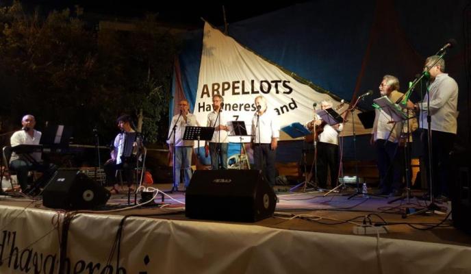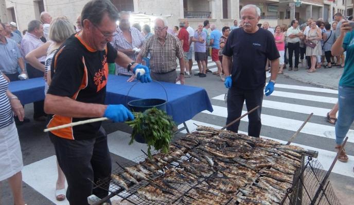 Cuatro hombres daban vuelta y vuelta a las sardinas. Es un proceso difícil por el peso del hierro y su longitud. No obstante, la gente quedó encantada con la cena, acompañada de un buen vino y pan. Mientras el público acababa de cenar, unos cuantos grupos de habaneras iniciaron sus conciertos en un escenario decorado para la ocasión. Al final, la gente se animó tanto que hasta coreaban, con los músicos, las canciones.