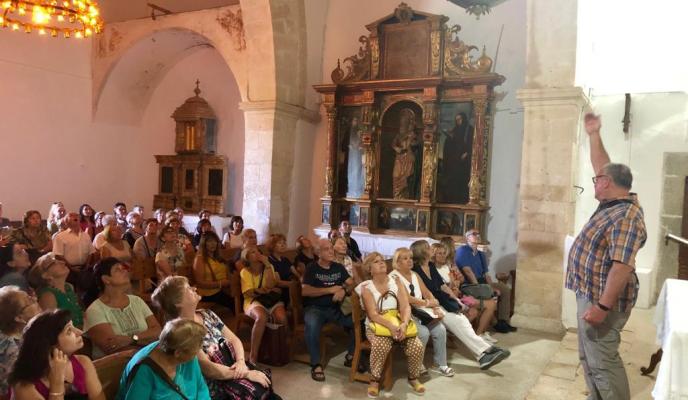 Eso es exactamente lo que ocurre con la ermita de Sant Miquel de Campanet, el destino de la última excursión del Club. Esta preciosa y antigua iglesia conserva de forma esmerada su estilo gótico y es admirable como se levanta firme desde el siglo XIII. Y para conocer mejor su larga historia, los suscriptores contaron con los relatos de Pere Rayó. El historiador repasó con cuidado los diferentes elementos de la ermita; describió con agudeza los retablos Mayor y del Roser, e incluso comentó las particularidades del pequeño cementerio de la ermita. Además, se pudo conocer que esta ermita de Sant Miquel tiene gestionada su conservación gracias a la colaboración de un equipo de voluntarios, encargados también del bar y la pequeña tienda, contiguos a la ermita.