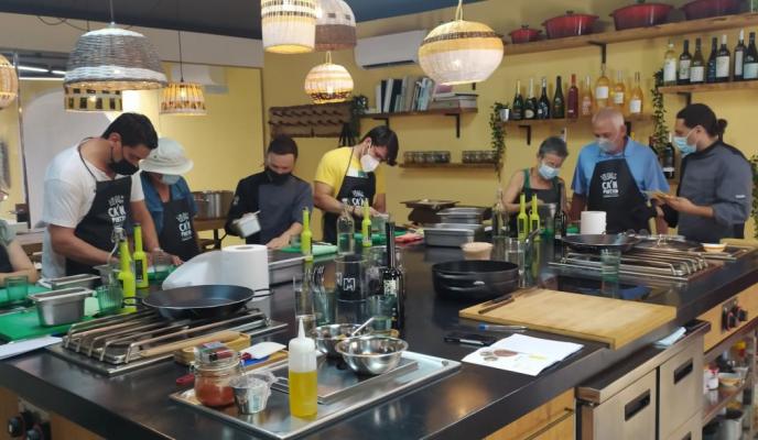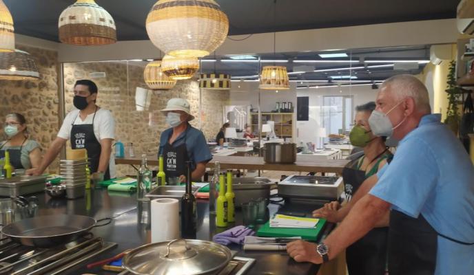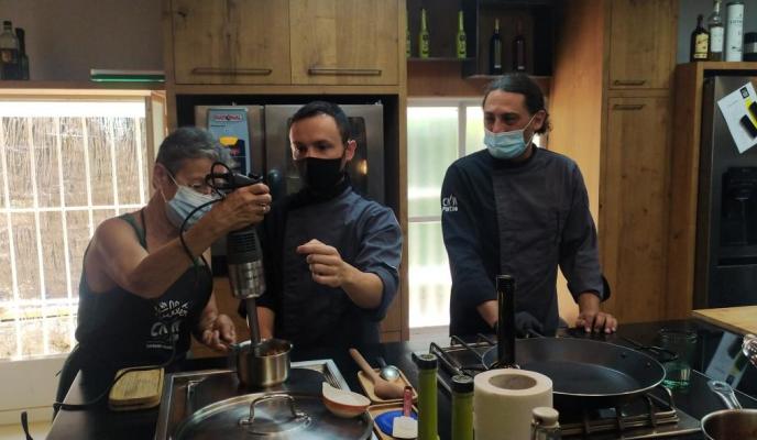 «Una vez repasados los conceptos básicos, empezamos preparando un caldo de colágeno, después, nos pusimos manos a la mesa para elaborar dos tipos de salmonetas, las cuales utilizamos en nuestros arroces» empieza a contar Mita, que continúa «elaboramos un carpaccio con las colas gambas rojas para después poderlo añadir al arroz socarrat de gamba roja que cada uno pudo experimentar cómo se hacía». El resto de arroces los cocinaron en grupo y una vez terminadas todas las recetas las probaron en un almuerzo que estuvo, nunca mejor dicho, para «chuparse los dedos», asegura Mita, que concluye añadiendo que en esta aventura gastronómica, todos los asistentes recibieron de regalo una botella de Oli de Sóller.