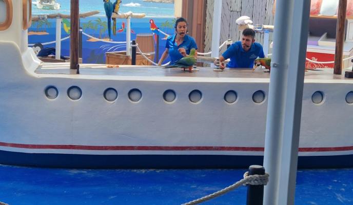 El espectáculo de los papagayos tampoco pasó desapercibido. Aves exóticas, loros, cacatúas y papagayos con su larga cola y sus llamativos colores, realizaron varias exhibiciones en las que demostraron su inteligencia, en especial la de los guacamayos.