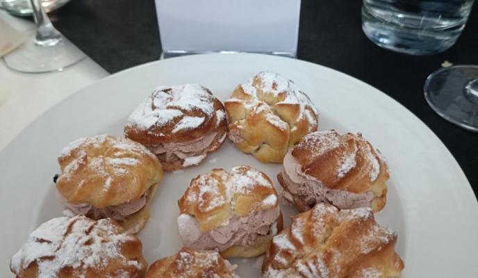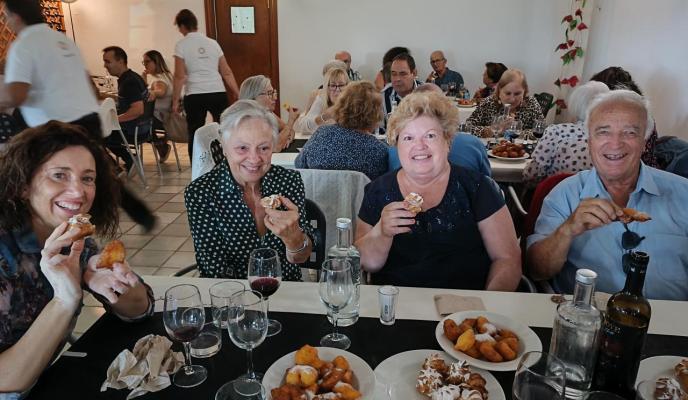 En el menú que degustaron los amigos suscriptores, el producto local y la tradición fueron los grandes protagonistas. Una picada con olivas mallorquinas y un «riquísimo frit mallorquí», puntualiza Ana, fue el comienzo de la cita gastronómica. Siguió un suculento arròs brut, «también muy sabroso» y para cerrar la comida, los bunyols. Ana destaca lo buenos que estaban y valora que se hicieran al momento, «calentitos y con su azúcar, una delicia», describe. Por otro lado, también se pudieron degustar los buñuelos de viento, rellenos de nata o chocolate.