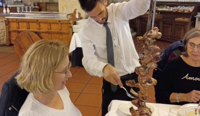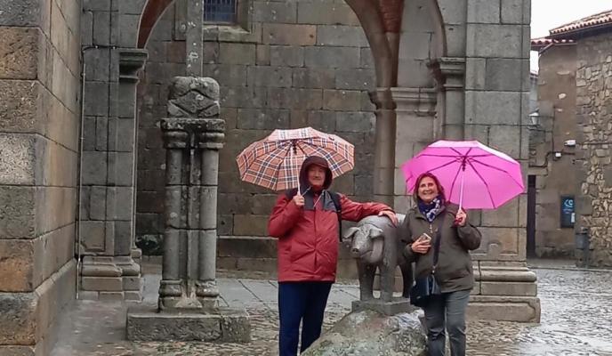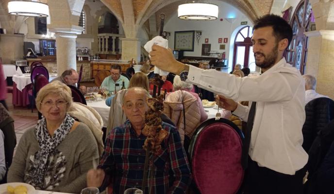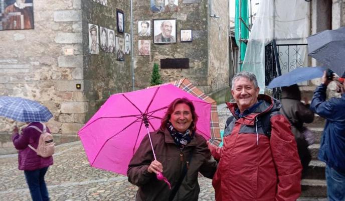 Al día siguiente, directos a Mogarraz, localidad conocida como ‘el pueblo de las caras’. Es un Conjunto histórico y artístico situado en el corazón del Parque Natural de Las Batuecas y Sierra de Francia. Después se dirigieron hasta Miranda del Castañar para recorrer su casco antiguo con ese carácter medieval que confieren sus casas de mampostería y madera características de la sierra. También admiraron su muralla de más de 600 metros, intacta y con las cuatro puertas que dan acceso al recinto histórico, orientadas a los cuatro puntos cardinales. La Alberca fue el lugar escogido para almorzar «un espectacular cabrito del que todos disfrutamos mucho» asegura Mita.