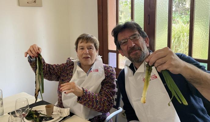 La finca Ca’n Puceta, ubicada en Santa Eugènia, fue una vez más el lugar elegido para llevar a cabo esta auténtica y tradicional experiencia gastronómica. Como manda la tradición, y pese a que el tiempo no acompañó, los 'calçots' se cocinaron en el exterior, directamente sobre las brasas, y fueron servidos al momento con su inseparable salsa romesco. La 'calçotada' se acompañó con parrillada de carne y patata asada; y como colofón, una deliciosa 'ensaïmada', que fue muy aplaudida por todos. Se disfrutó tanto de la comida que algunos suscriptores alargaron la sobremesa tomando unas hierbas de la Isla.