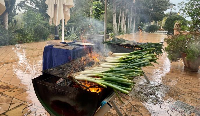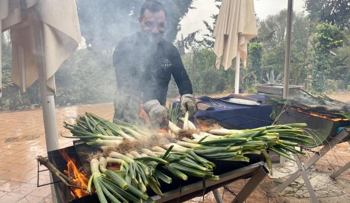 Como es bien sabido, los 'calçots' son un tipo de cebolletas. Pero eso sí, por su variedad, por su proceso de cultivo, y por su forma de cocinarlas y comerlas, resultan unas cebolletas muy especiales. Un manjar que requiere de manos expertas que potencien aún más si cabe su característico sabor. Y en esta lides, nadie mejor para hacerlo que Rafael Genovard, el experimentado chef de Tiberi Catering, quien estuvo a cargo de la 'calçotada' de la que disfrutó un numeroso grupo de suscriptores.
