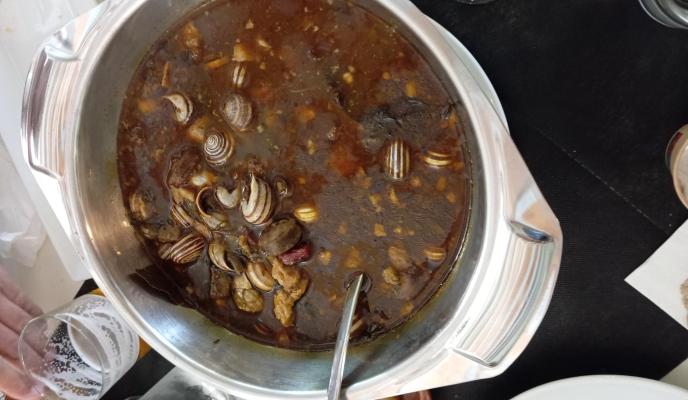 Es cierto que los caracoles con all i oli fueron los protagonistas indiscutibles, cocinados de diferentes maneras, incluyendo una famosa receta preparada por Genovard. Pero la comida también incluía una parrillada de carne a la brasa bien aromatizada. El postre, de tradición mallorquina, como no podía ser de otra manera, fue el gató de almendras. Y acompañando a los platos, vino tinto, cerveza, agua y café.