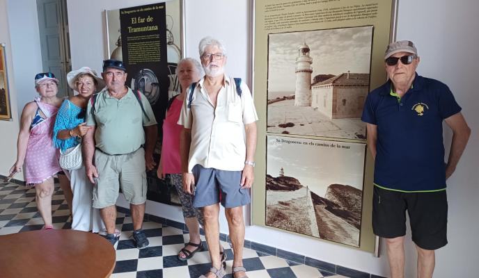 A la llegada a la isla recibieron las explicaciones de Sergi Pinyol, informador del Parc Natural, sobre las normas de cuidado del entorno y los puntos de interés de este lugar privilegiado. Mientras parte del grupo prefirió quedar en Cala Lledó, la pequeña calita de aguas transparentes situada junto al puerto, otros emprendieron el itinerario señalizado que transcurre hasta el Far de Tramuntana, con una primera parada en el mirador de na Miranda, un balcón magnífico sobre la costa de Andratx. Tras pasar junto a Es Colomer, una torre cilíndrica construida como palomar, y tras caminar varios metros, una línea de piedra en el suelo identifica el meridiano de París, el antiguo meridiano cero sustituido por el actual meridiano de Greenwich, que midió desde Mallorca el francés François de Aragón. Ya en el Faro de Tramuntana, el privilegiado grupo de suscriptores accedió al interior del faro para visitar esta construcción de 1902, un punto imprescindible de orientación para navegantes.