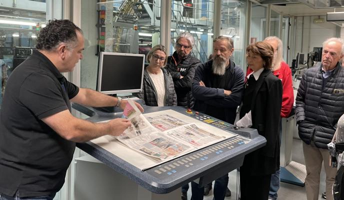 El pasado 13 de noviembre, se llevó a cabo una visita guiada a la planta impresora del Grupo Serra. En compañía de Caterina Noguera, directora de Fidelización, Suscripciones y Logística, el grupo al completo fue recibido en la planta impresora, ubicada en el polígono de Son Valentí de Palma, por Luis Anaya, administrador, y Juan Carlos García, director técnico del Grupo Serra.