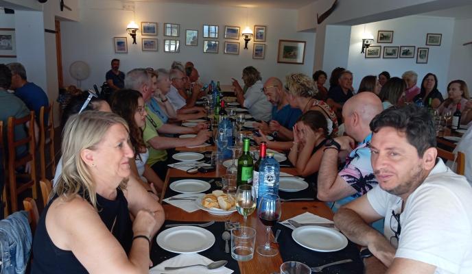 En este entorno único, llegó el esperado momento gastronómico del día en el restaurante Sa Posada de Monte Toro, con la exquisita caldereta de langosta como plato estrella. Un estupendo almuerzo que contó con un servicio excepcional y que también incluyó entrantes, vino y postre.