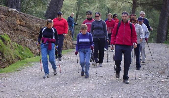 El grupo practicó el Nordic por Volta des General de Banyalbufar durante dos horas. Se trata de una ruta en la que se camina entre bosques de pinos y, más adelante, entre formaciones rocosas y con una dificultad moderada.