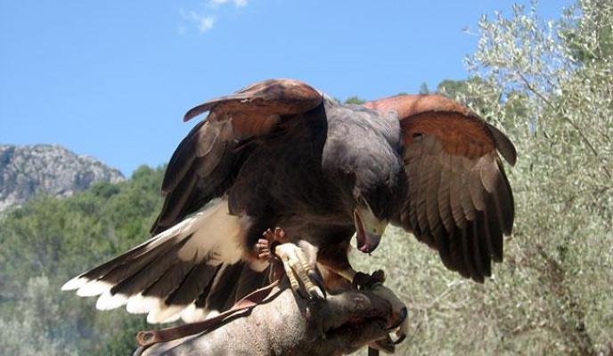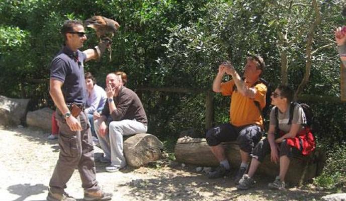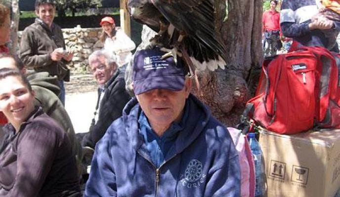 La demostración con el halcón atrajo las miradas de este público tan especial, pues hizo peripecias como la de posarse suavemente sobre la cabeza de uno de los exursionisas.