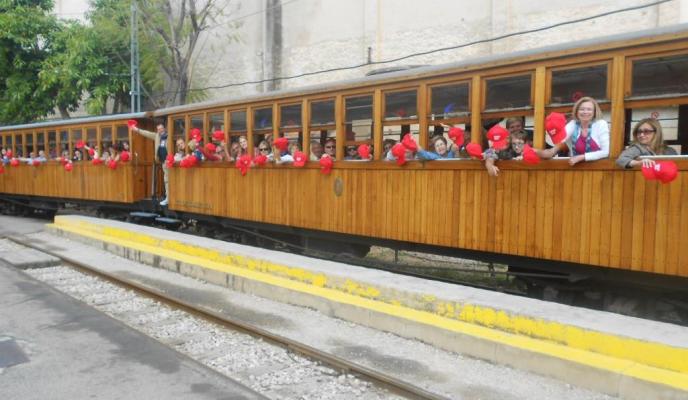 Eran más de cien personas y, en grupo, se montaron en el popular Ferrocarril de Sóller para llegar hasta el municipio y, una vez allí, disfrutar del jolgorio del acto de la investidura de las Valentes Dones que marcaba el inicio de las Fires i Festes de Maig de Sóller.