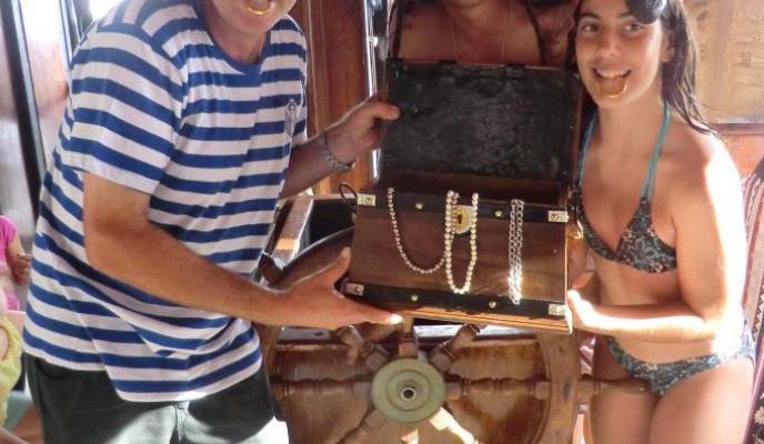 Los tripulantes del barco pirata llevaron a los noventa marineros de travesía por el mar y, después, atracaron en la playa de ses Illes Malgrats, donde los aventureros pudieron nadar y jugar.