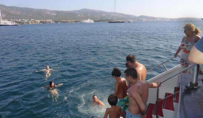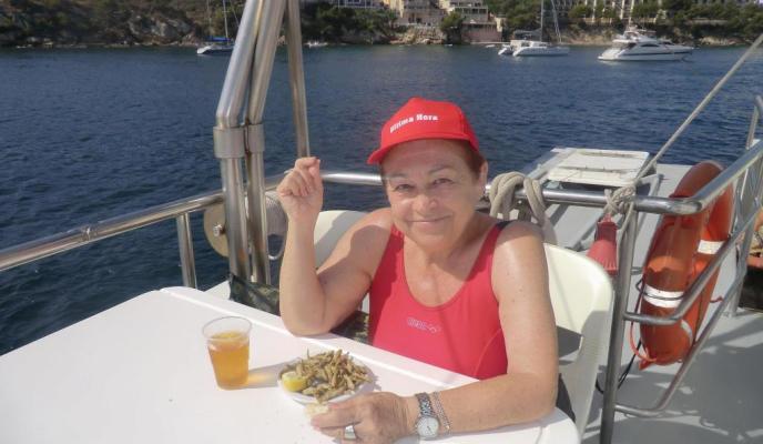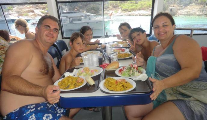Pararon en la playa de Portals Vells donde también nadaron y los más pequeños jugaron. En torno a las dos de la tarde los pasajeros subieron nuevamente al barco para degustar la paella con el lujo de maravillosas vistas.