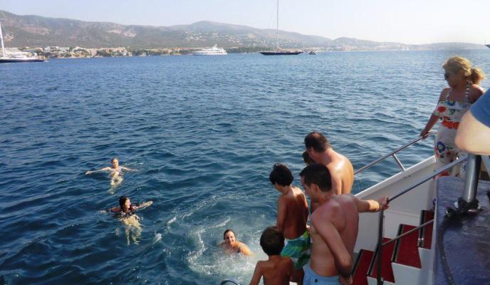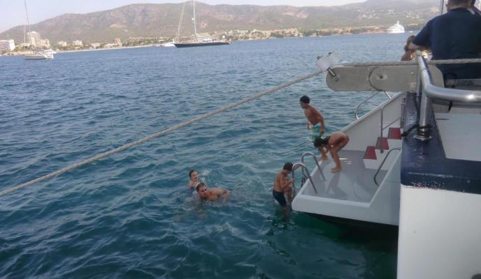 La empresa Tramontana S.L., recogió en su barco, a unos cuarenta suscriptores en frente del Auditorium de Palma. Desde allí se dirigieron al medio del mar para refrescarse en aguas del mediterráneo, pero entre chapuzón y chapuzón hubo tiempo para otras actividades.