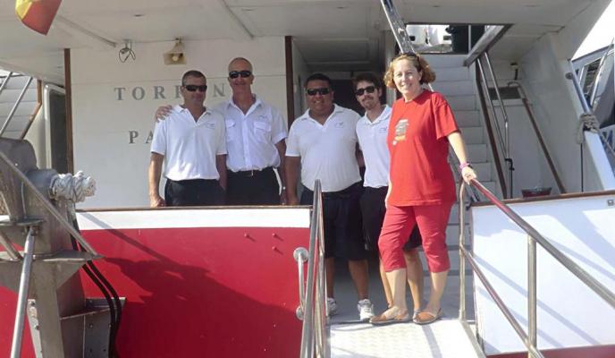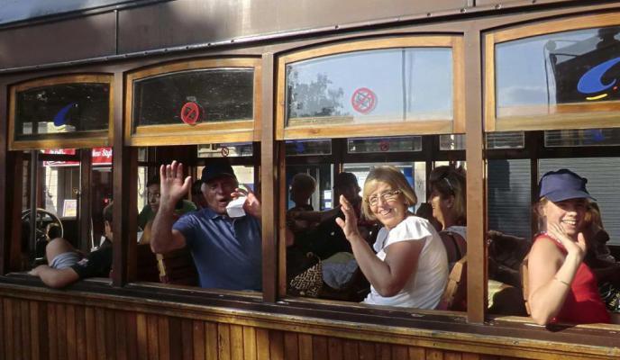 Cien suscriptores se reunieron en Palma a las siete y media de la mañana para subirse al Ferrocarril de Sóller, tras este magnífico viaje por parte del paisaje norte de Mallorca, los excursionistas enlazaron con el tranvía hasta llegar al puerto de Sóller donde les esperaba la embarcación de Barcos Azules.
