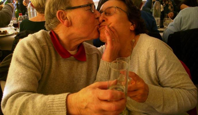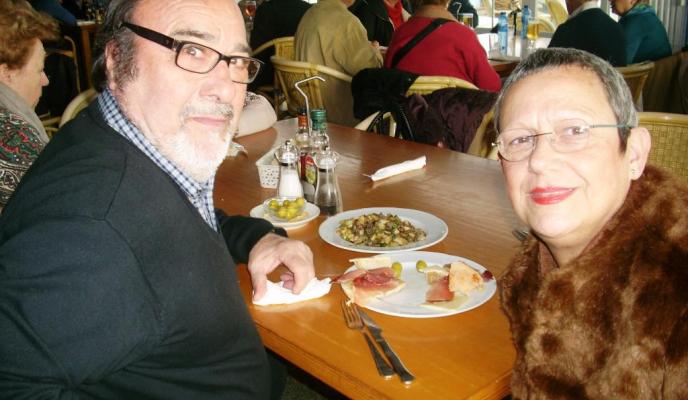 La hora de la comida la coronó el restaurante de Ses Cases de Son Sant Martí con un «no bueno, si no excelente menú» tal y como asegura Margot, acompañante del grupo en nombre del Club. Al finalizar la comida, Toni Gatell, dueño de Viajes Gatell Tours (empresa con la que el grupo se despalazó ese día), invitó a todos los presentes a cava con motivo del día de los enamorados.