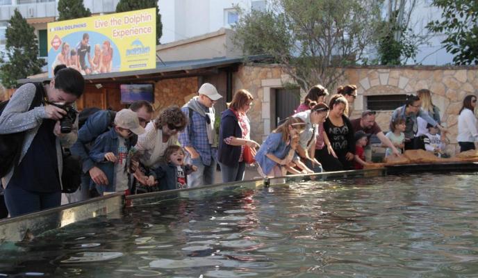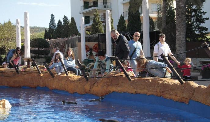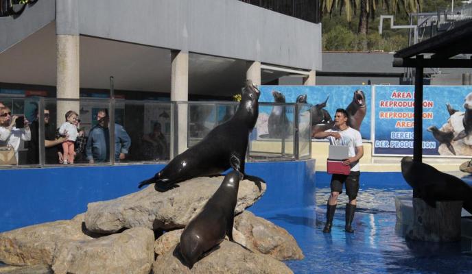 El espectáculo de una foca y un león marino en la piscina grande fue la antesala a la puesta en escena de los delfines. De ambos números el público reaccionó con asombro, risas y mucho entretenimiento, sobre todo con los espectaculares saltos de los mamíferos. Otro momento divertido fue cuando los delfines mojaron a parte del público. Para estos entrenamientos, Marineland explicó que el ingrediente clave era el cariño de los entrenadores hacia estos animales, y viceversa.