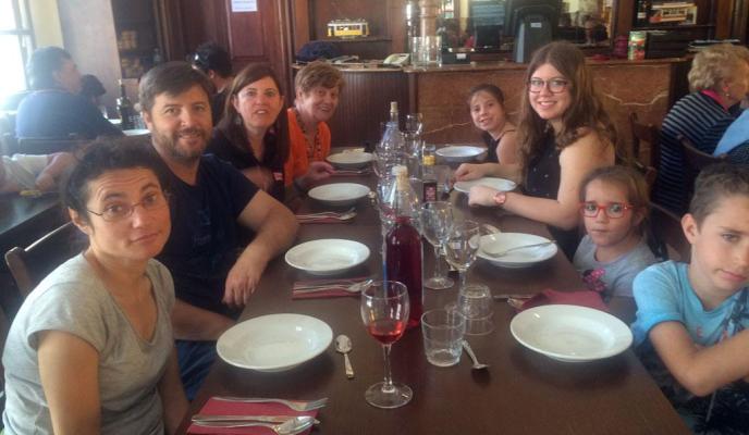 Después, cogieron el tranvía para ir al restaurante Mar y Sol, pero antes, un poco de tiempo libre para pasear por un encantador puerto bañado por el sol que les siguió todo el día. El menú, de carácter mallorquín, se acompañó de buena atención y amabilidad por parte de los empleados del restaurante. Hubo un sorteo de entradas de cine y foto de grupo. Como el tren se volvía a las 19h, el grupo aún tuvo tiempo para algunas compras.