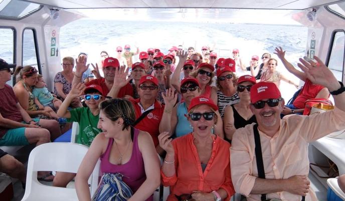 El calor acompañó en una salida que comenzó, a las 10h, en el muelle de la Colònia de Sant Jordi para poner rumbo a Cabrera. Las aguas cristalinas que rodean la isla ofrecen paisajes espectaculares invitando a refrescarse en ellas. Por el camino disfrutaron de hermosos parajes, aves y especies marinas, además de las rapaces que nidifican en el Parque Nacional de Cabrera.