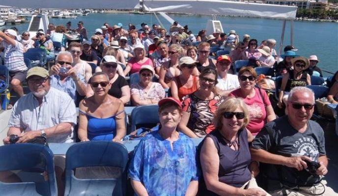 Puntual como un reloj suizo, la jornada daba el pistoletazo de salida a las 9.00 horas, con el grupo tomando asiento en el autobús que les llevaría hasta Alcúdia. Al llegar a su destino recorrieron el pintoresco casco antiguo del municipio. A continuación, pusieron rumbo al Port d’Alcúdia, donde les esperaba el barco que les llevaría hasta Formentor. La travesía, de aproximadamente hora y media de duración, ribeteó el faro de Aucanada y Cabo Menorca antes de hacer un alto en el Coll Baix, donde algunos suscriptores se dieron un baño. Poco después, la embarcación estrechó la escasa distancia que la separaba de Formentor. Allí, les esperaba un autocar para realizar una breve excursión al Mirador d’en Colomer. Fue la última parada antes de dirigirse al Port de Pollença, donde una mesa bien surtida les esperaba.