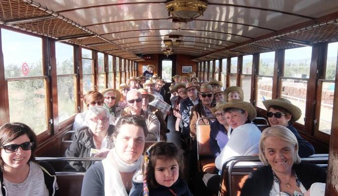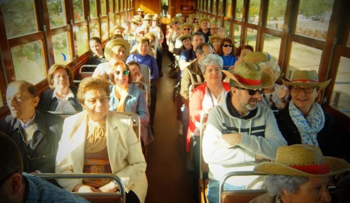 Desde la estación de Palma, donde sale el Ferrocarril de Sóller, se citaron las cien personas que se apuntaron a esta encantadora excursión a Sóller y su puerto.