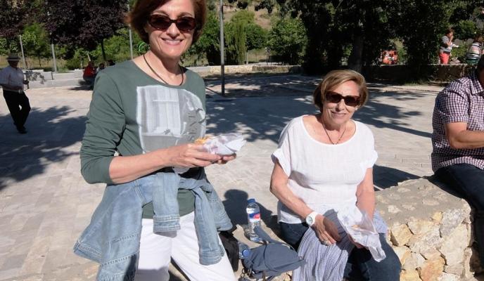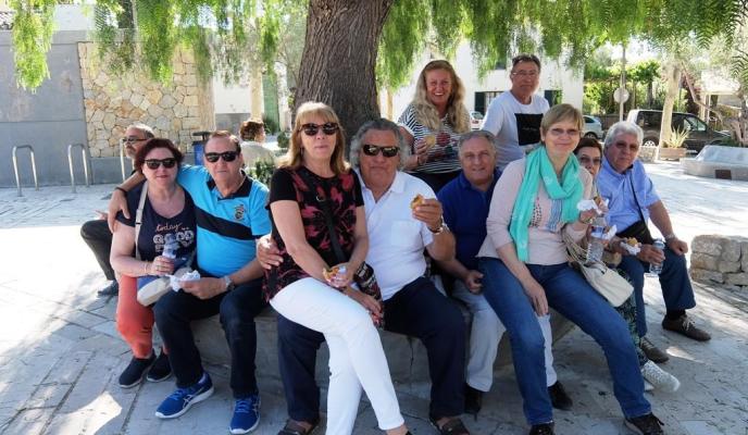 Tras la visita disfrutaron de algo de tiempo libre en el mercado de Santa María para después comer un menú compuesto por: arroz a la marinera, lomo con salsa, postre, agua y vino, en el restaurante Menestralia.