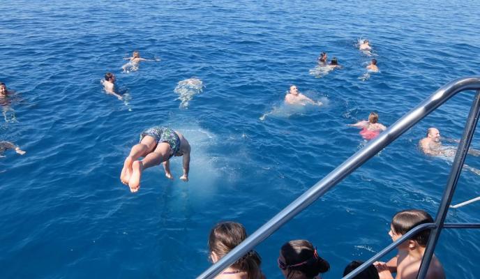El inicio de la ruta fue muy amena, con el mar tranquilo y altas temperaturas. La primera parada fue El Toro, una zona costera del suroeste de la isla ideal para que los suscriptores fondearan a la vista de la Illes Malgrats. Después de la actividad, el grupo aprovechó la ocasión para darse un baño en las aguas cristalinas de la zona. Una vez acabada esta actividad, la excursión marítima continuó hacia Playa Portal Nous y Playa del Mago, donde los excursionistas bajaron del barco para disfrutar en la playa y tomar el sol.