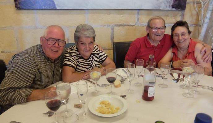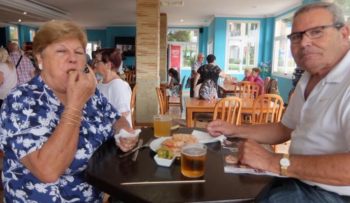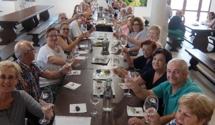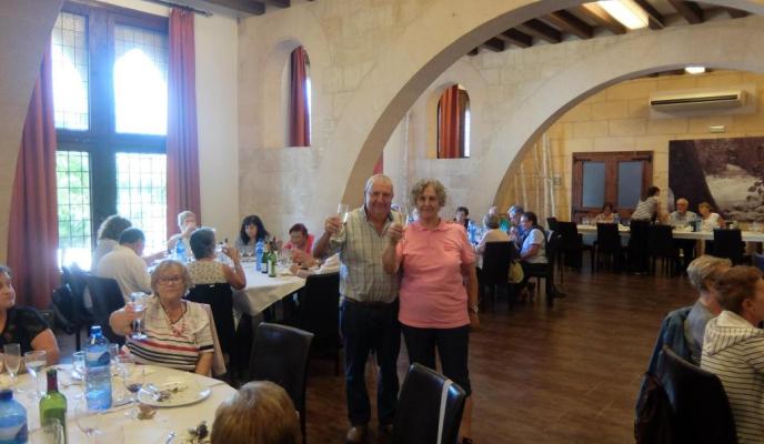 La segunda parada fue en la bodega Vi Rei. A muchos les impresionaron las viñas, un terreno enorme y muy bien cuidado. Seguidamente, la enóloga Esther explicó la historia de esa bodega. Por último, pasaron a la cata: tres tipos de vino (tinto, rosado y blanco) y un piscolabis contundente. La comida fue a cargo del restaurante Menestralia, en Campanet, donde degustaron arroz brut, escaldums y, de postre, brownie y helado. Desde el Club destacan la agradable bienvenida de cuatro parejas nuevas, que quedaron encantadas, y el servicio inmejorable tanto del restaurante como de la bodega Vi Rei.