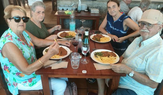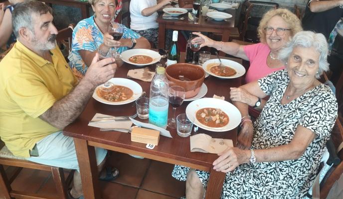 Sobre las 13:00 horas, se reunieron en la plaza de España para dar inicio al segundo viaje del día, esta vez a bordo del Tranvía de Sóller, que los condujo hasta su espectacular puerto donde les esperaba todo un festín gastronómico en el restaurante Mar y Sol. Un potente arròs brut y un gustoso rostit de carn, acompañados de bebidas y postre, hizo las delicias de todos los presentes.