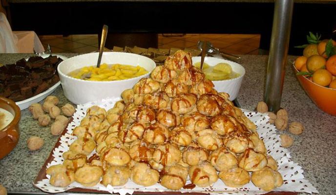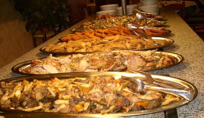 La comida estaba dispuesta como buffet en el que destacaban los diversos manjares típicos de la gastronomía mallorquina y una selecta variedad de marisco, carnes, ensaladas y golosos postres artesanos.