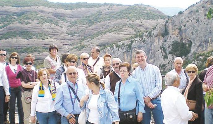 El nutrido grupo pudo disfrutar de los majestuosos paisajes que coronan la campiña aragonesa, los cuales, en ocasiones, veían ensalzada su singular belleza al estar teñidos por el blanco de las nieves que aún, en pleno crepúsculo primaveral, anida en sus valles.
