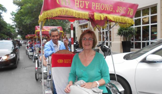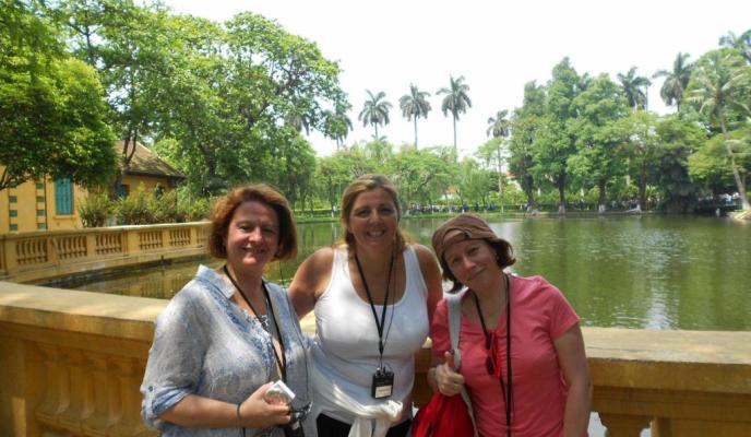 Ya con los pies en suelo vietnamita, disfrutaron de un primer día de viaje muy completo descubriendo la capital del país, Hanói. El Museo de la Guerra llamó la atención del grupo que, ya por tarde tuvo la oportunidad de dar un paseo en los característicos ‘xiclos' por el barrio antiguo. Sin embargo, esas no fueron las únicas actividades: visitaron, entre otros, el mausoleo de Ho Chi Minh, la casa de Ho Chi Minh sobre pilotes, el Palacio del Gobernador, la pagoda del pilar único o el Templo de la Literatura, así llaman a la primera universidad del país que se fundó en 1070.