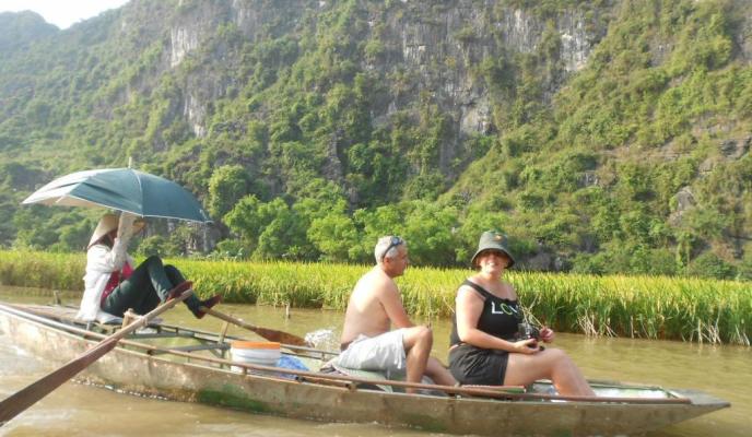 En Hoa Lu, capital de Ninh Binh, visitaron los templos de las dinastías Dinh y Le. En Van Lam realizaron un pequeño recorrido en barco por el río Tam Coc. En el paseo les esperaba un espectacular paisaje lleno de rocas, cuevas y arrozales.
