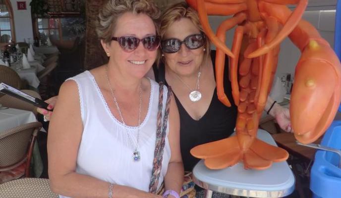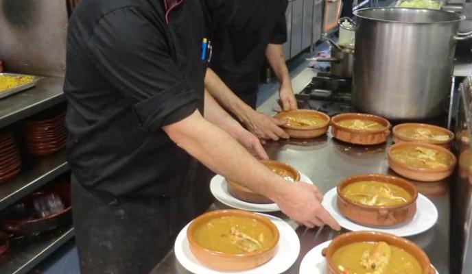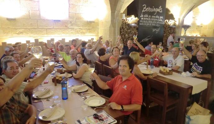 Una vez en el puerto de Ciutadella los presentes visitaron la fábrica de quesos con degustación de sus productos típicos. A continuación, fueron trasladados hasta el restaurante Moli de's Compte, donde saborearon un menú excepcional junto a Paco Martínez, de viajes Fama, y Juan Hernández, relaciones públicas del Club. Dicho menú estaba compuesto por buñuelos de sobrasada con miel, mejillones de roca a la brasa, chocos a la andaluza y queso semicurado menorquín a la brasa con refritos de ajos; el segundo plato fue una exquisita caldereta de langosta de Menorca. De postre, 'menjar blanc' con helado de galletas. Una degustación llena de sabores y matices que encantó a los comensales.