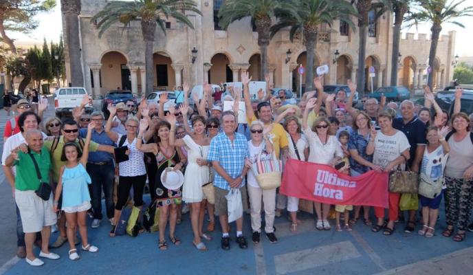 A las 8.00hs, los aventureros se disponían a salir desde Alcúdia con el ferry de Iscomar. Dos horas y media más tarde, llegaron al puerto de Ciutadella. Una vez allí, todos se trasladaron a Mercadal, donde pudieron degustar los quesos y otros productos típicos. Tras la visita, se dirigieron hacia el Restaurante Molí d’Es Compte, en Ciutadella, donde les esperaba un menú exquisito: una picada a base de buñuelos de sobrasada con miel, mejillones de roca a la brasa, chocos a la andaluza, queso semi curado y menorquín a la brasa con refrito de ajos. Después, el plato principal: una rica caldereta de langosta. Un exclusivo postre daba fin a la comida: menjar blanc con helado de galletas. Tras ello, los comensales gozaron de algún tiempo libre para pasear y realizar compras, y a las 19.30hs, embarcaron para poner fin a la deliciosa jornada.