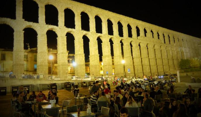 La noche de este primer día estaba prevista pasarla en la encantadora Segovia. Al día siguiente, obligada admiración al acueducto romano que corona la ciudad y que ha sido, es y será siempre digno de contemplar. Sin menos interés, también recorrieron la calle Real hasta la Catedral, y el precioso Álcazar de Segovia, del que cuentan que Disney se inspiró para el mágico castillo imagen de la multinacional. Después de comer el típico cochinillo visitaron La Granja de San Ildefonso con el palacio y sus cuidados jardines.