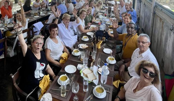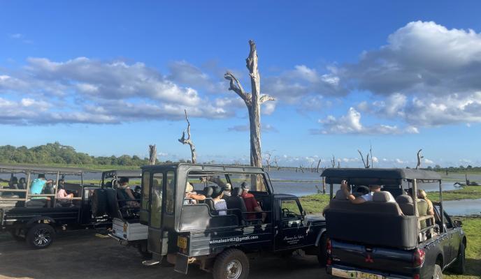 La última parte del viaje todavía aguardaba algunas sorpresas con un radical cambio de escenario al sur de la isla: el Parque Nacional Udawalawe, un espacio creado para albergar los elefantes desplazados a causa de la construcción de un embalse cercano. La visita se realizó en jeeps que atraviesan una sabana semidesértica, contemplando manadas de elefantes, cocodrilos, iguanas, búfalos de agua, pavos reales, entre otros animales. Todo un obsequio visual para los suscriptores, que también pudieron presenciar la hora del desayuno de las crías huérfanas de elefantes en el cercano Elephant Transit Home.