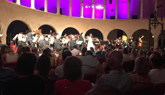 Los agraciados con estos accesos al concierto, pudieron deleitarse con bellas interpretaciones de la conocida orquesta balear, dirigida por Pablo Mielgo. Además, las voces de la soprano María Mudryak y el barítono Amartuvshin Enkbath resonaron con fuerza entre los muros del emblemático edificio, dejando embelesados a los asistentes al concierto.